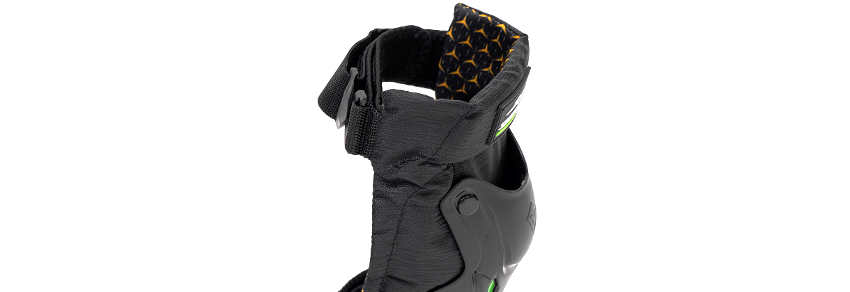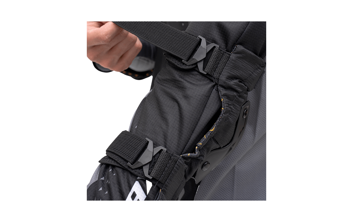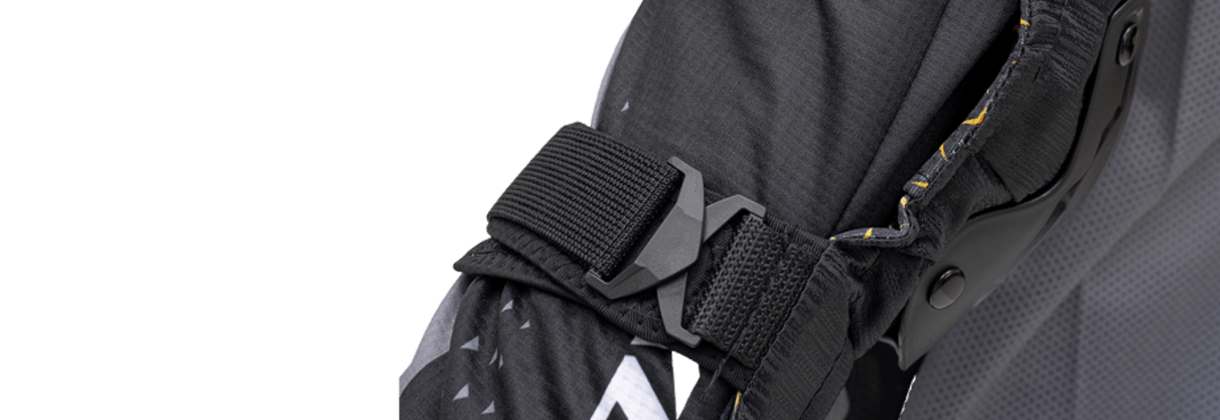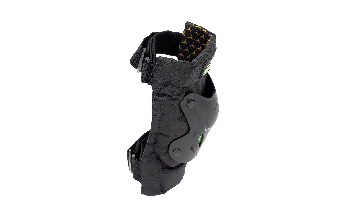 Lightweight polypropylene armor disperses shocks and protects elbows from impacts.