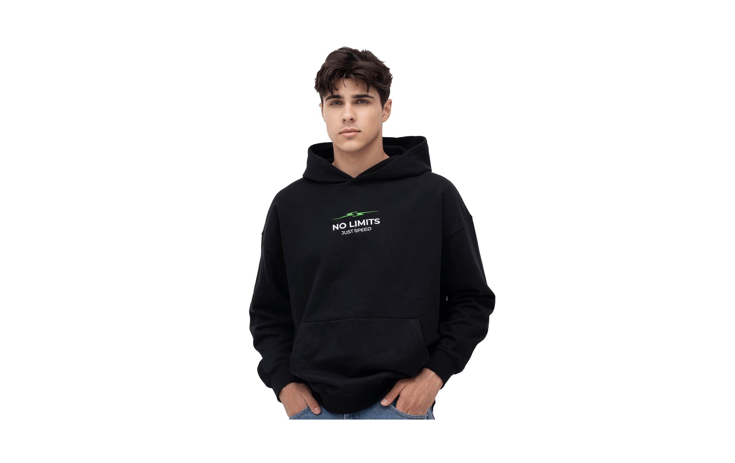 Casual black hoodie with Sharmax embroidery and a bold attitude.