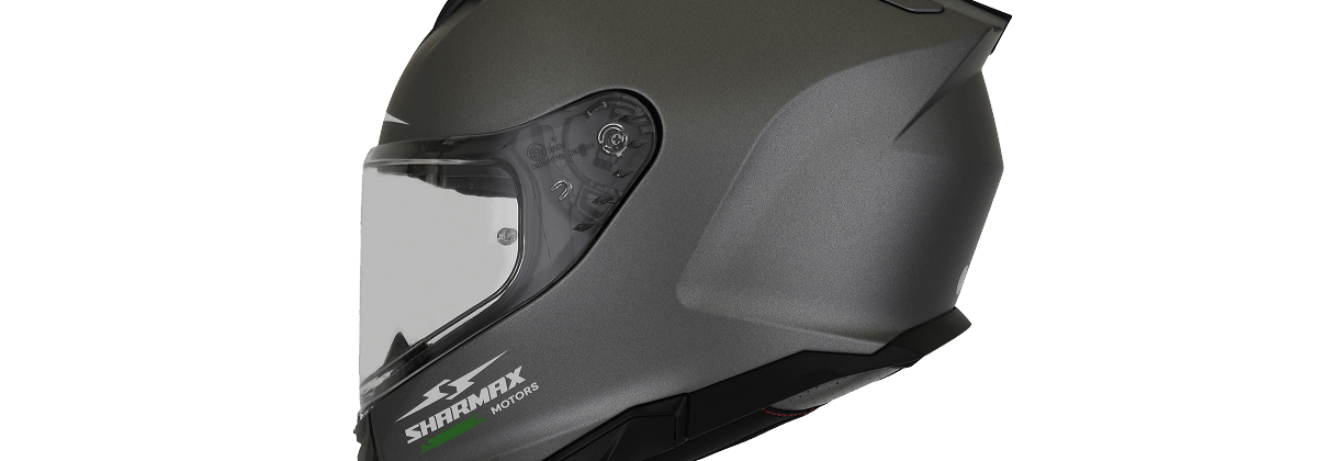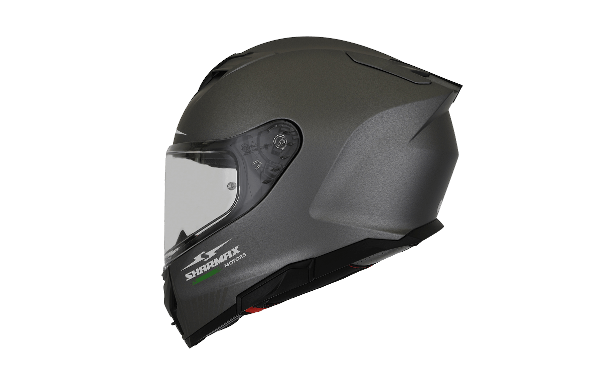 The Sharmax motorcycle helmet features a durable multishell construction with a removable, washable comfort liner. A double visor system ensures clear vision in all light conditions. The quick-release micrometric buckle offers ease of use. An enclosed shell helps reduce wind noise for a quieter ride. Certified by ECE safety standards.