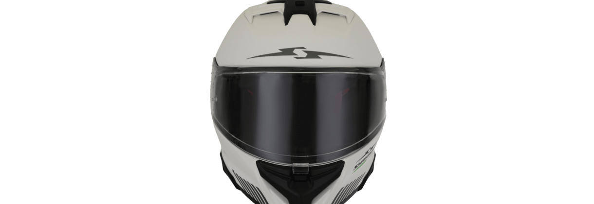 The Sharmax motorcycle helmet features a durable multishell construction with a removable, washable comfort liner. A double visor system ensures clear vision in all light conditions. The quick-release micrometric buckle offers ease of use. An enclosed shell helps reduce wind noise for a quieter ride. Certified by ECE safety standards.