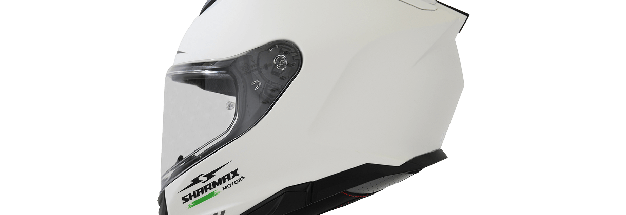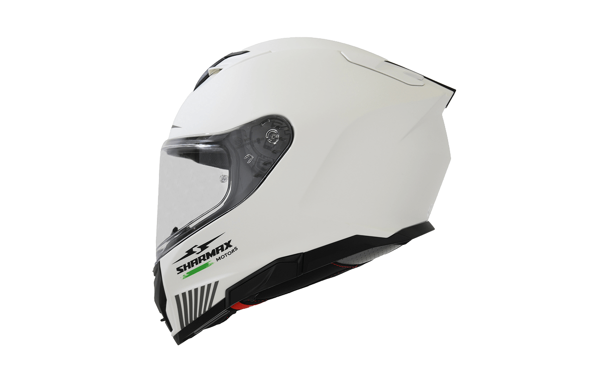 The Sharmax motorcycle helmet features a durable multishell construction with a removable, washable comfort liner. A double visor system ensures clear vision in all light conditions. The quick-release micrometric buckle offers ease of use. An enclosed shell helps reduce wind noise for a quieter ride. Certified by ECE safety standards.