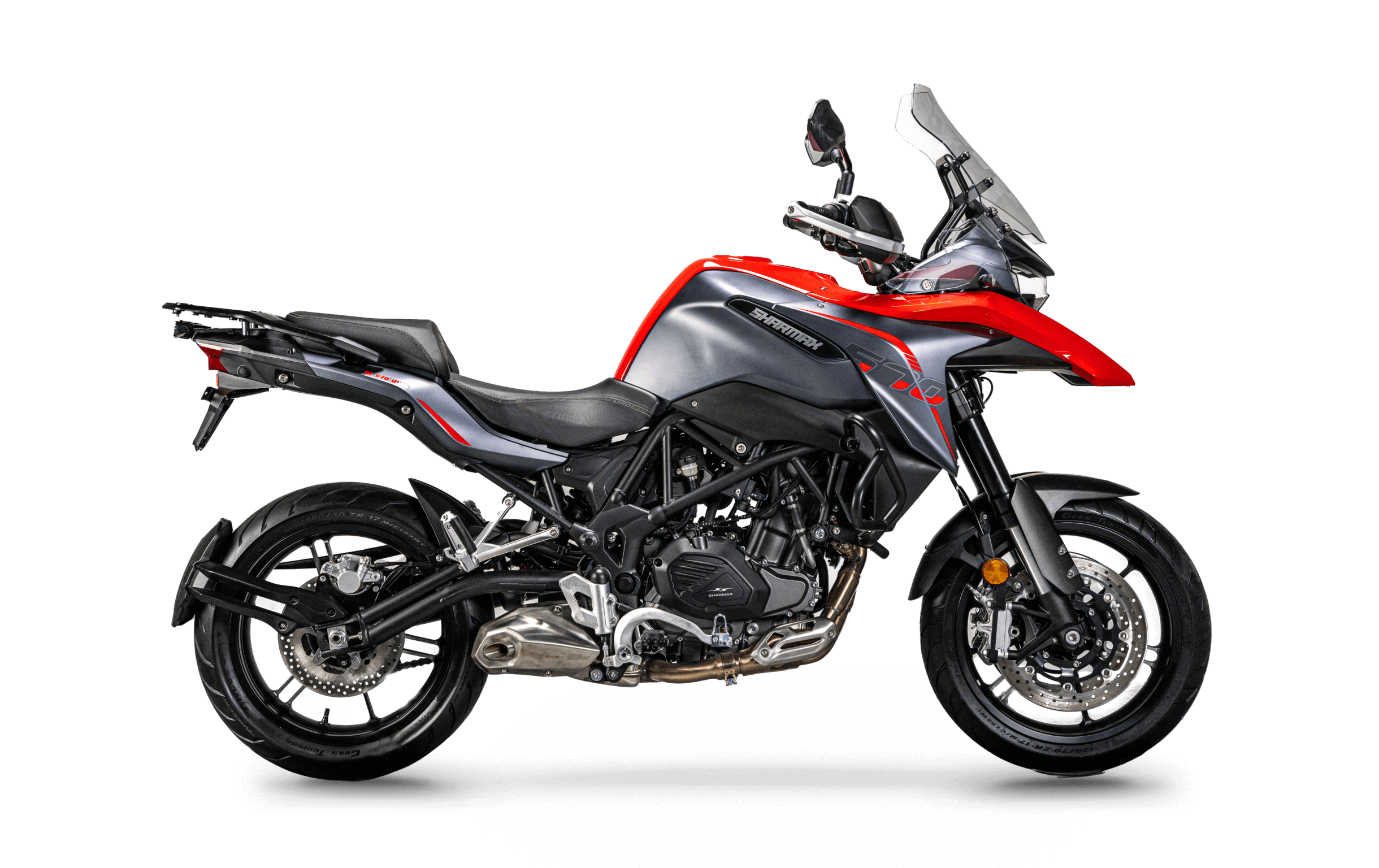The Sharmax GL 570 Ultra is a powerful touring bike designed for long-distance comfort and performance. Its 554cc, 4-stroke, twin-cylinder engine delivers 48 HP, ensuring a balanced and smooth ride. Equipped with a large 19.5-liter fuel tank, it’s perfect for extended trips without frequent stops. The bike reaches a max speed of 140 km/h and operates at 7500 RPM, supported by a liquid cooling system for peak efficiency. With hydraulic dual disc brakes (320mm) in the front and a rear disc brake (260mm) with ABS, it offers reliable stopping power. Designed for 2 passengers, the GL 570 also features a comfortable seat, a windshield, and storage compartments for added practicality. Check the MSRP on our website.
