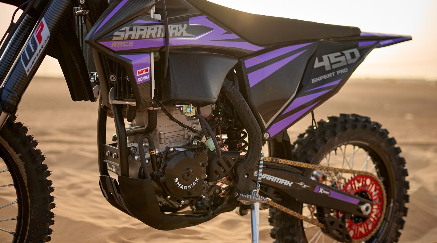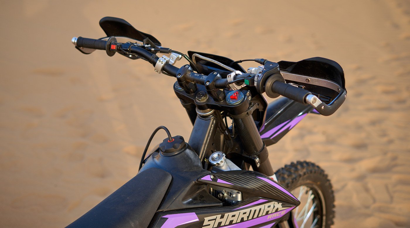 Такая эргономика даёт надёжный контроль над передком: байк уверенно слушается команд, не требует чрезмерных усилий на руле и позволяет точно чувствовать, что происходит под колесами. Sharmax Expert Pro RXP 450 позволяет ехать агрессивно, не превращая управление в борьбу с мотоциклом — при условии, что пилот физически подготовлен.