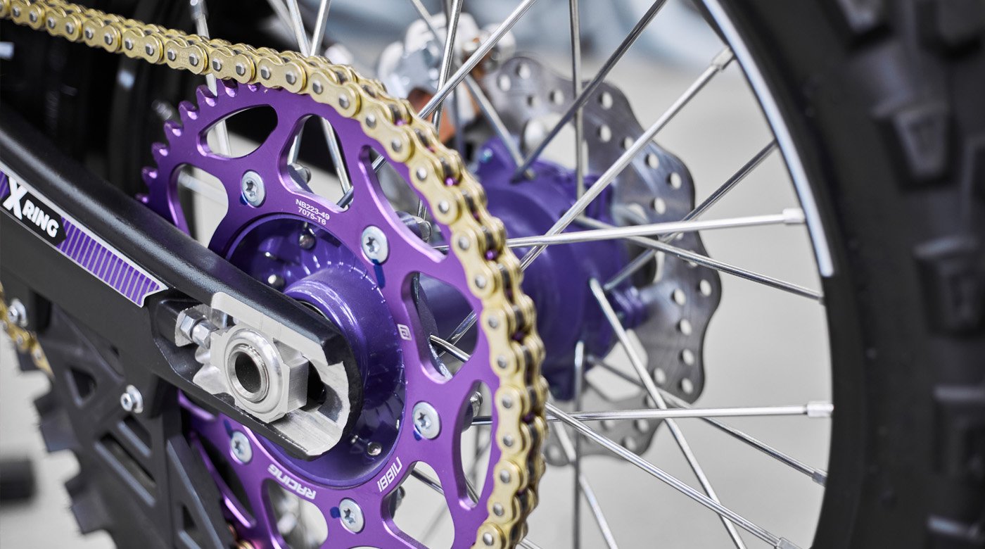 В конструкции Expert Pro RXP 450 использованы усиленные компоненты, рассчитанные на высокую отдачу мотора и агрессивную эксплуатацию. Например, усиленная цепь формата 520 (Choco Gold), которая выдерживает резкие старты и удары без преждевременного растяжения. Прочная рама, усиленные маятник и крепления подвески снижают риск деформаций при жёстких приземлениях и многократных падениях.