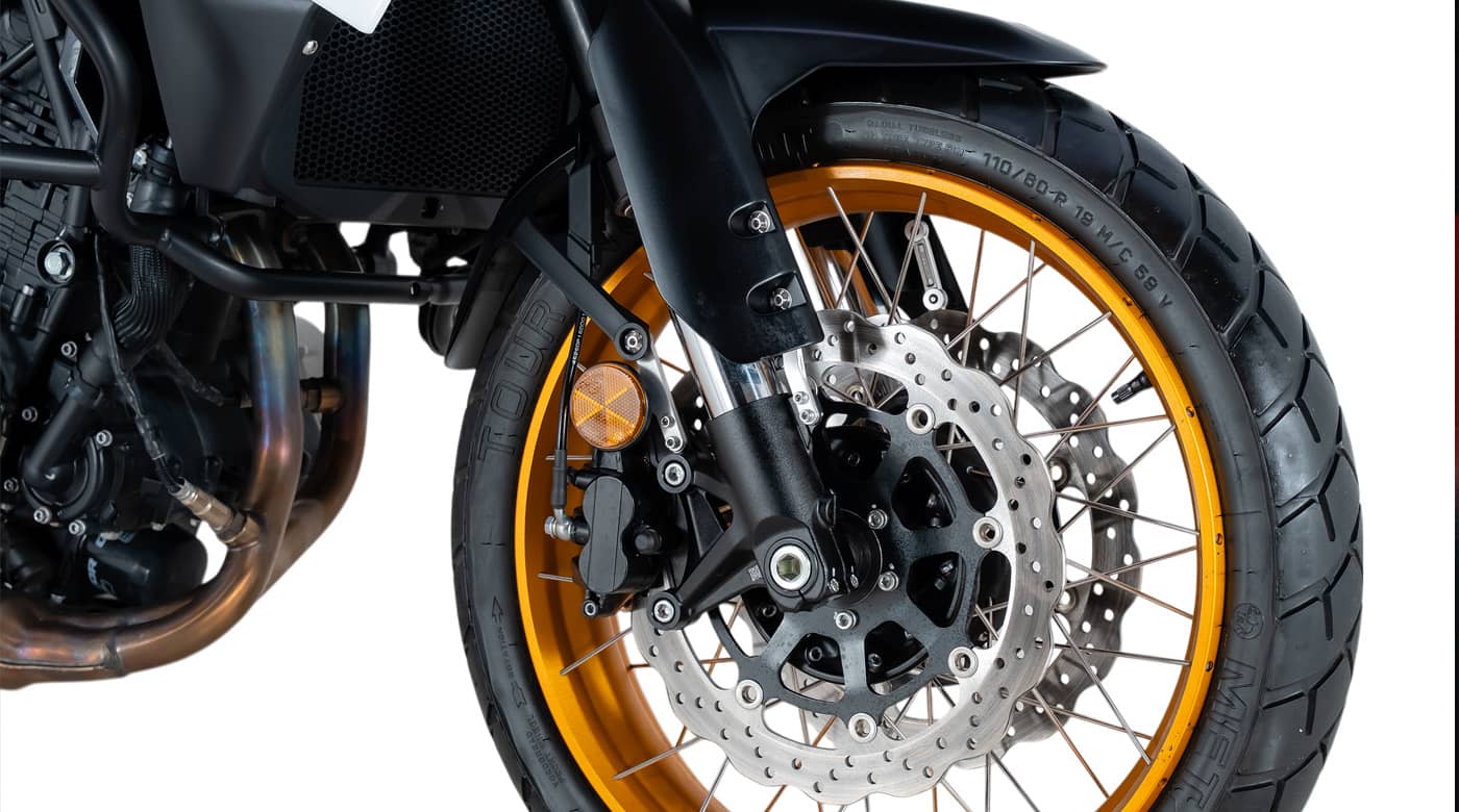 За торможение на GL 801 отвечают радиальные суппорты Brembo с двойными передними дисками 320 мм и задним диском 260 мм. В сочетании с двухканальной ABS Bosch 9.1M это даёт уверенное замедление и контроль даже при экстренных торможениях на влажном или скользком покрытии. Райдеры отмечают информативную ручку переднего тормоза и предсказуемое срабатывание ABS без излишних вмешательств. Это особенно важно для тех, кто только переходит на тяжёлый турэндуро: техника прощает ошибки с дозировкой усилия и помогает сохранить контроль в стрессовых ситуациях.