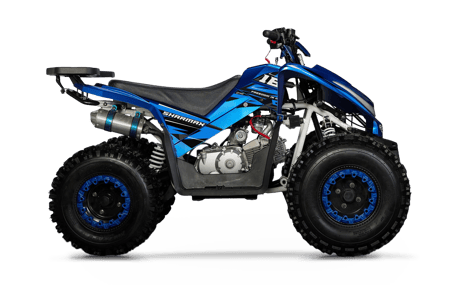 A compact youth ATV designed for light trails and desert outskirts, offering easy control and confident handling in warm-climate riding conditions